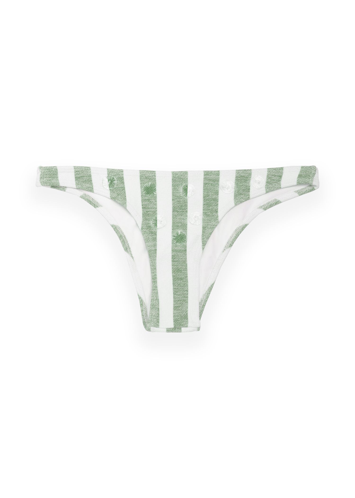 - These mid-rise Marina bikini briefs are cut high at the sides to create the illusion of longer legs. Brought to life in our signature pompons